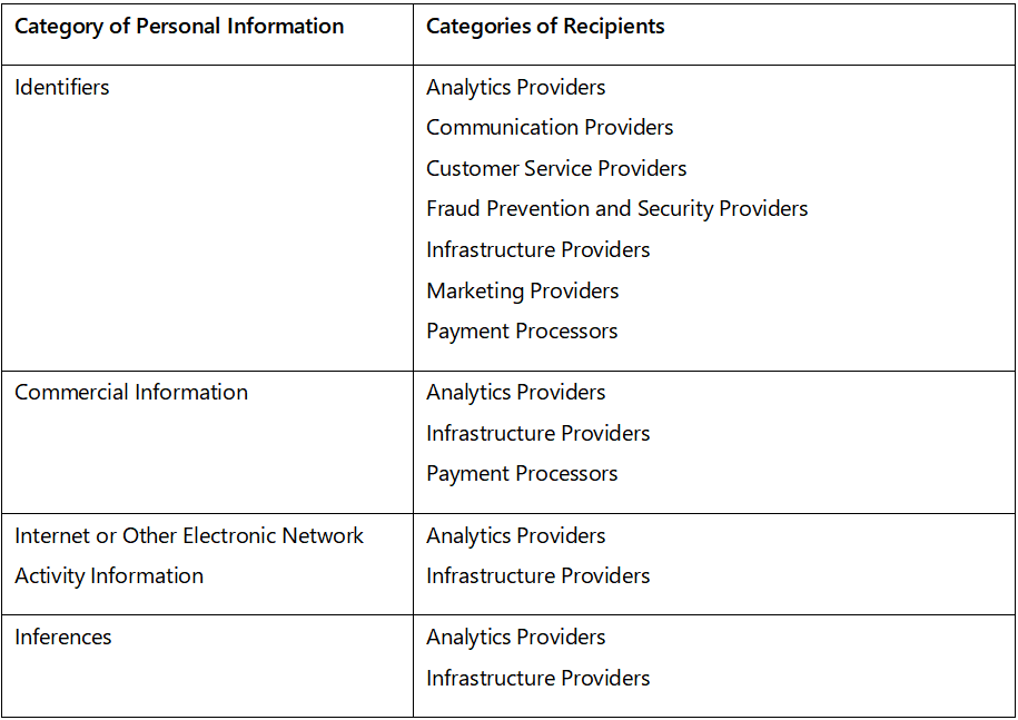 Vendors and contractors provide hosting, analytics, ad delivery, payment processing, and customer support. Contracts limit use to authorized purposes.